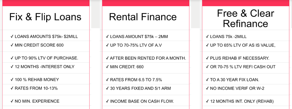 Helping individuals, real estate investors, and companies deal with various financial issues through proper fund raising. Providing professional or expert advice and resources in a particular area such as private money, hard money lending, strategies, real estate funding, etc. Clients have access to more funding than would be feasible for them to retain in-house.